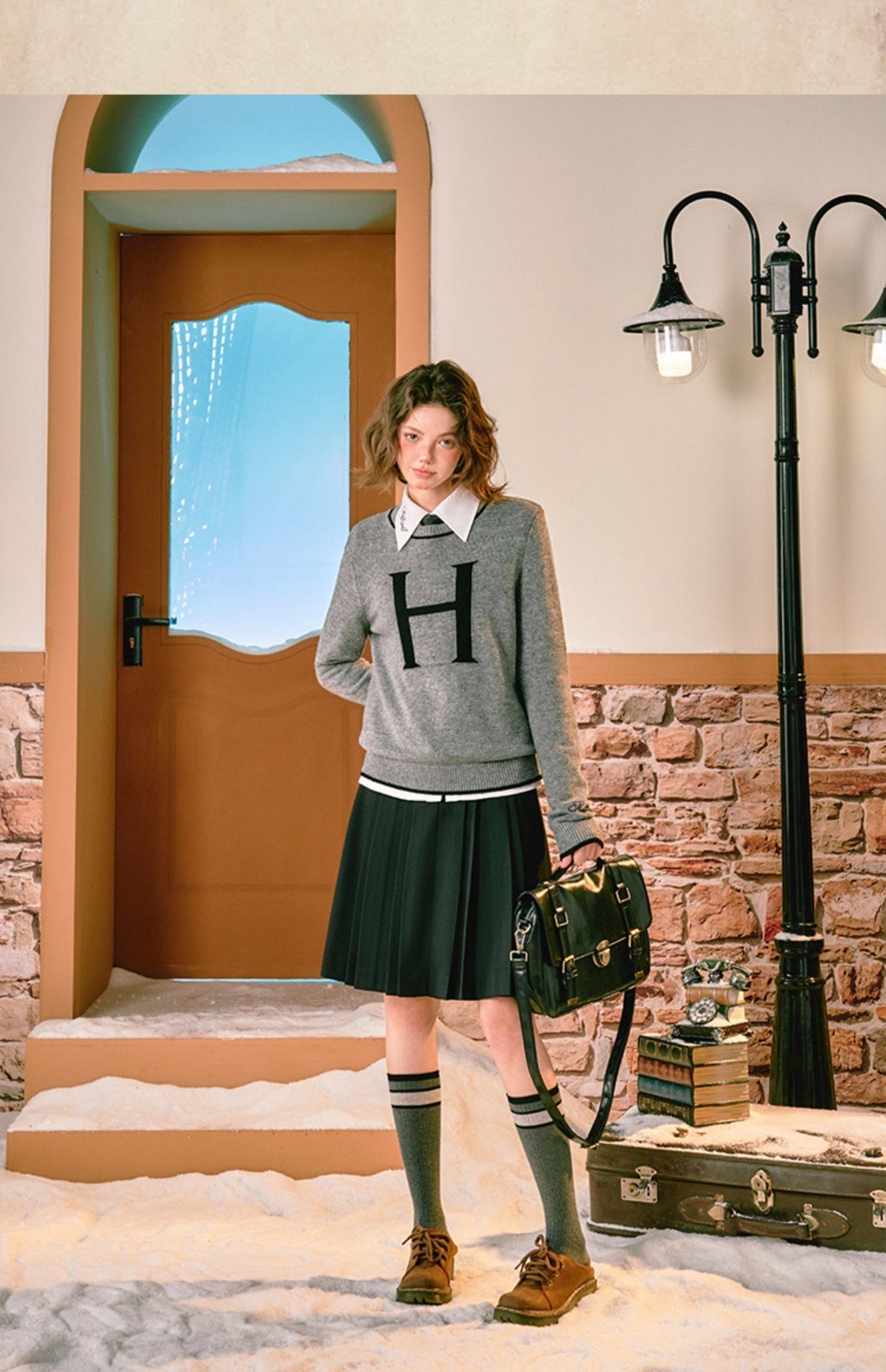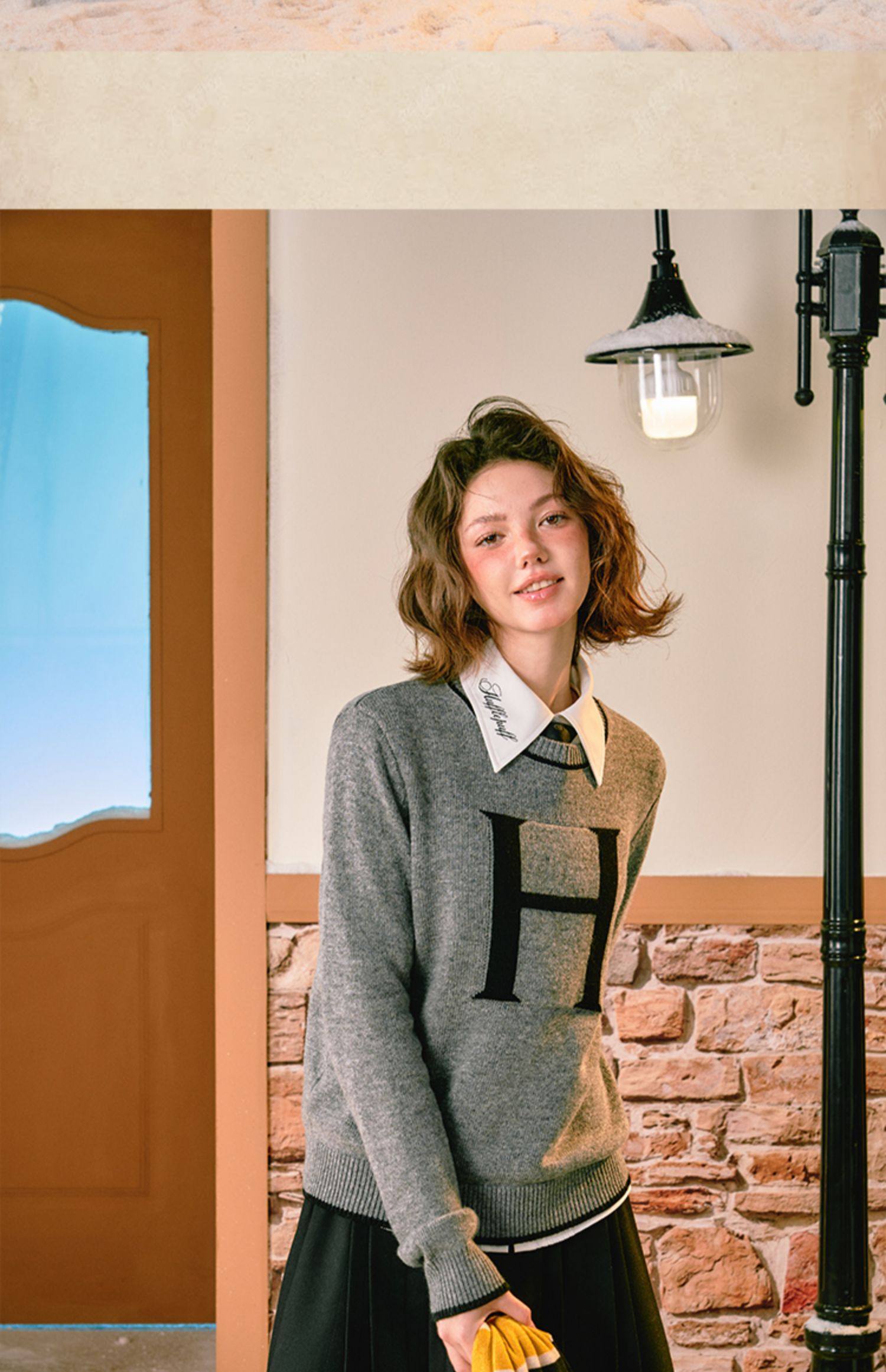 [Geng Bean Story] Harry Potter Joint Sweater For Women 2023 Winter Korean Version Slimming Pullover British Style Couple